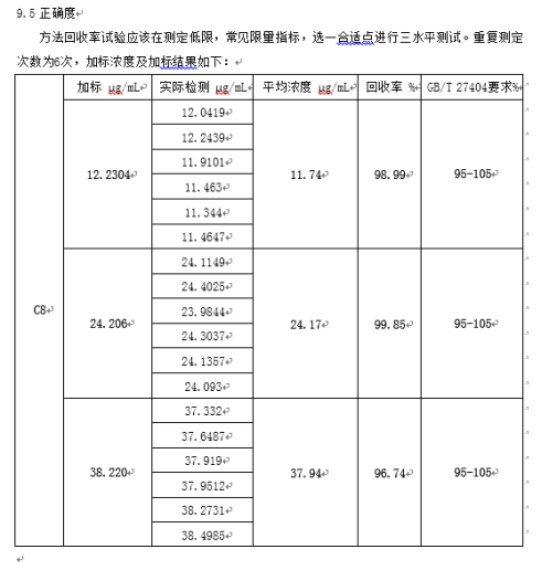 在方法驗(yàn)證期間我們會(huì)參考GB/T 27404、EP、JP、USP等,選擇更加嚴(yán)格的標(biāo)準(zhǔn)來進(jìn)行加標(biāo)測試,附圖為部分測試項(xiàng)目回收率結(jié)果。