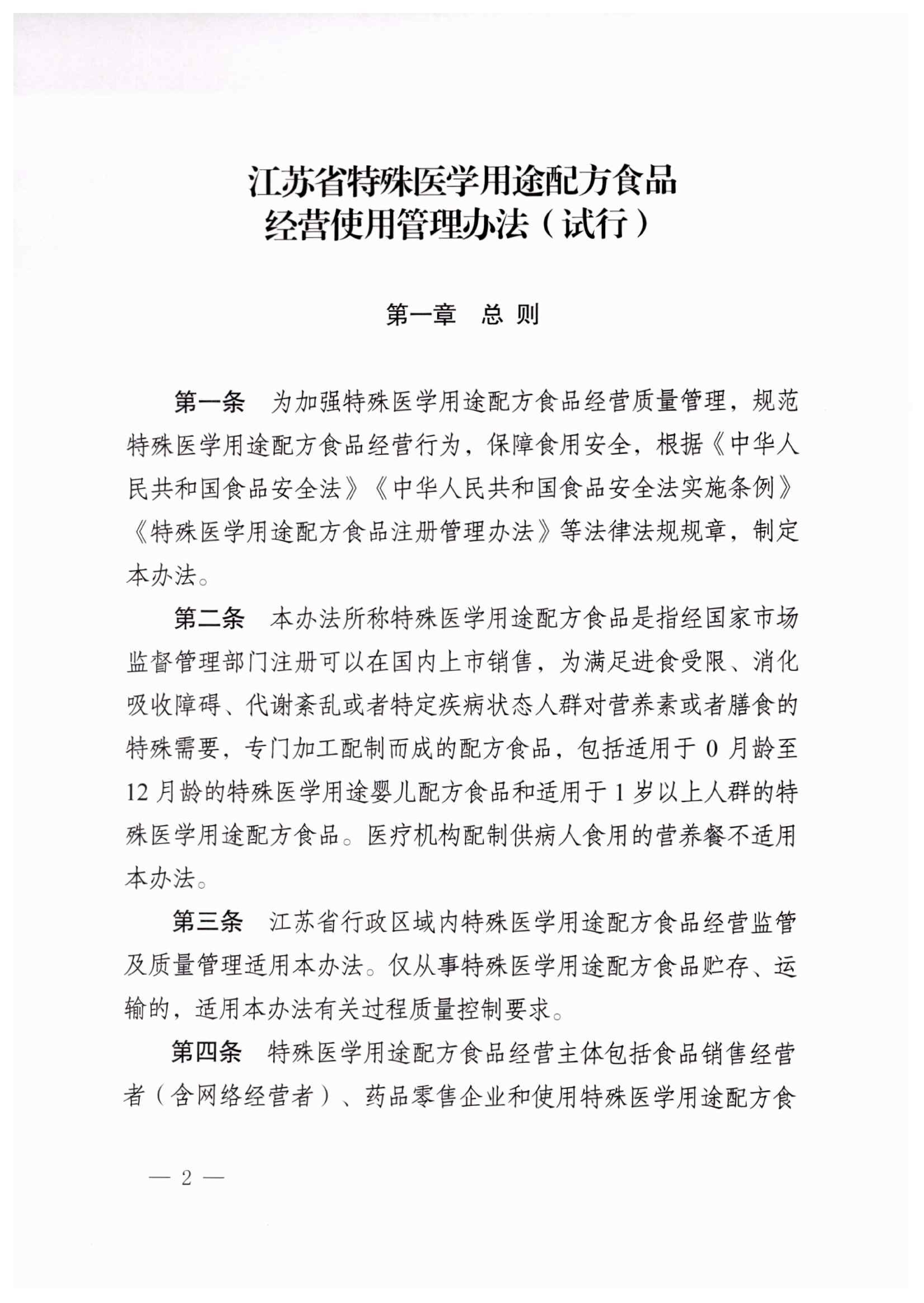 關(guān)于印發(fā)《江蘇省特殊醫(yī)學(xué)用途配方食品經(jīng)營使用管理辦法(試行)》的通知(附全文)