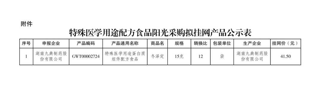 江蘇省公布特殊醫(yī)學用途配方食品陽光采購擬掛網產品的通知,冬澤定上榜