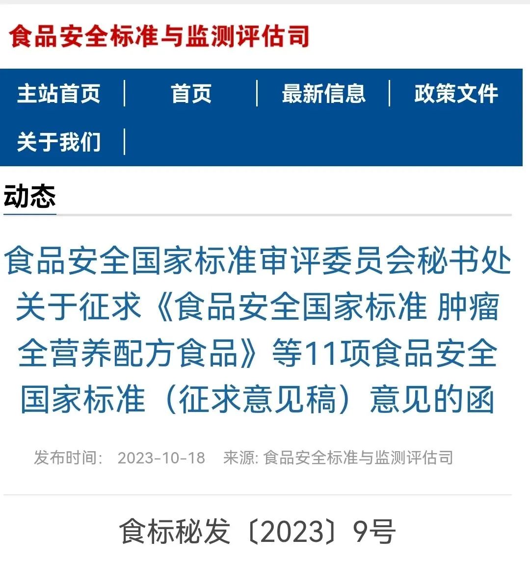 根據(jù)《食品安全法》及其實(shí)施條例規(guī)定,我委組織起草了《食品安全國家標(biāo)準(zhǔn)腫瘤全營養(yǎng)配方食品》等11項(xiàng)食品安全國家標(biāo)準(zhǔn)和修改單(征求意見稿),現(xiàn)向社會(huì)公開征求意見。請于2023年12月15日前登錄食品安全國家標(biāo)準(zhǔn)管理信息系統(tǒng)(https://sppt.cfsa.net.cn:8086/cfsa_aiguo)在線提交反饋意見。