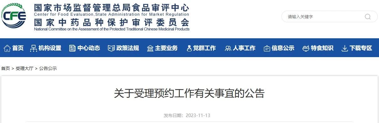 食品審評(píng)中心:關(guān)于受理預(yù)約工作有關(guān)事宜的公告
