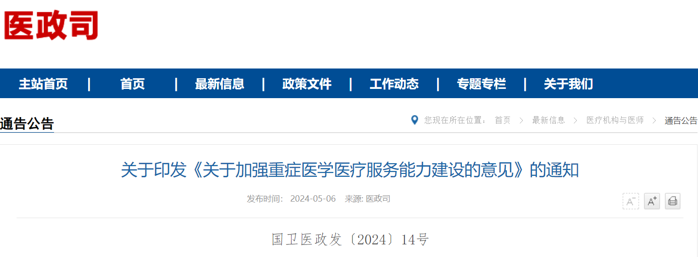 為全面推進重癥醫(yī)學(xué)醫(yī)療服務(wù)能力高質(zhì)量發(fā)展,近日,國家衛(wèi)健委、國家發(fā)改委、國家中醫(yī)藥管理局、國家疾控局等八部門聯(lián)合制定了《關(guān)于加強重癥學(xué)醫(yī)療服務(wù)能力建設(shè)的意見》。圍繞重癥醫(yī)學(xué)醫(yī)療服務(wù)能力建設(shè),從完善重癥醫(yī)學(xué)醫(yī)療服務(wù)網(wǎng)絡(luò)、加強重癥醫(yī)學(xué)??颇芰?、擴充重癥醫(yī)學(xué)專業(yè)人才隊伍、推進重癥醫(yī)學(xué)醫(yī)療服務(wù)領(lǐng)域改革等五方面提出意見,其中明確提出: