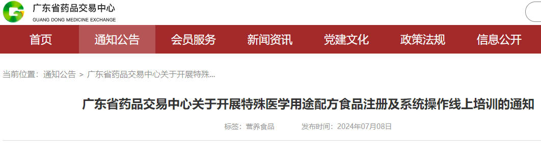 【通知】廣東省藥品交易中心關(guān)于開展特醫(yī)食品注冊及系統(tǒng)操作線上培訓(xùn)