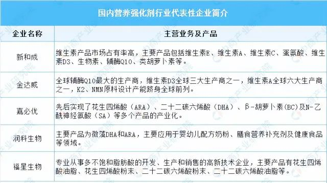 由于上游原材料對(duì)企業(yè)的研發(fā)能力、資金實(shí)力要求高,行業(yè)壁壘高,加上產(chǎn)品從開發(fā)到最終商業(yè)化應(yīng)用時(shí)間周期太長(zhǎng),我國(guó)營(yíng)養(yǎng)強(qiáng)化劑市場(chǎng)集中度相對(duì)較高,行業(yè)競(jìng)爭(zhēng)激烈。目前,我國(guó)營(yíng)養(yǎng)強(qiáng)化劑市場(chǎng)份額主要被帝斯曼、巴斯夫等國(guó)外廠商以及新和成、金達(dá)威、浙江醫(yī)藥、嘉必優(yōu)、潤(rùn)科生物、福星生物等國(guó)內(nèi)廠商占據(jù)。