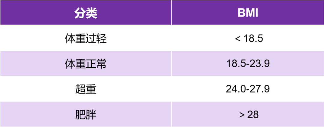 參考中國成人判斷超重和肥胖程度界限值,計(jì)算方式如下: