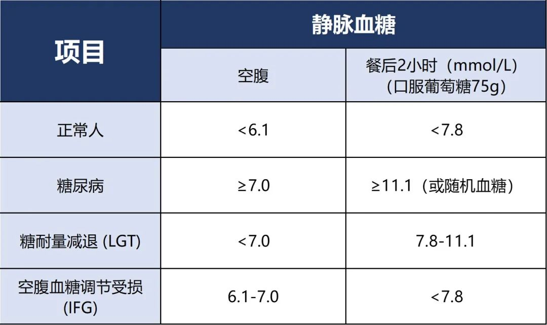 糖尿病診斷標(biāo)準(zhǔn)如上表
