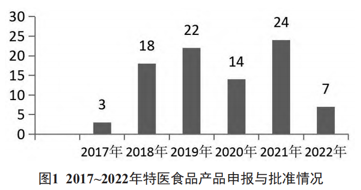 方法:通過(guò)國(guó)家市場(chǎng)監(jiān)督管理總局特殊食品信息查詢平臺(tái)查詢20172022年批準(zhǔn)產(chǎn)品情況,分析批準(zhǔn)的產(chǎn)品類(lèi)別、形態(tài)、適用人群等方面內(nèi)容。