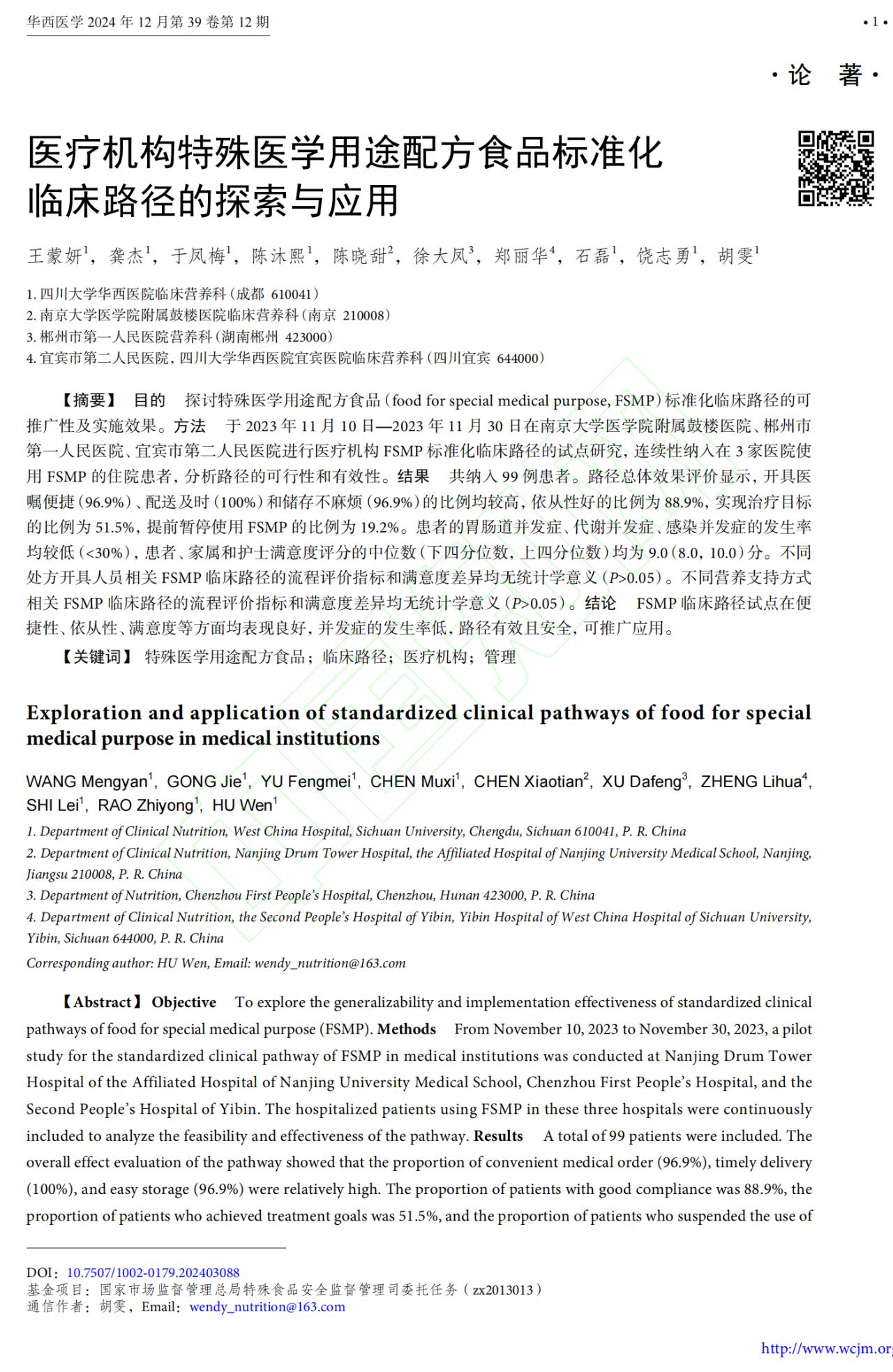 本研究為醫(yī)療機(jī)構(gòu)FSMP的規(guī)范化管理提供了實(shí)證支持,對于提升臨床營養(yǎng)治療質(zhì)量、促進(jìn)FSMP產(chǎn)業(yè)發(fā)展具有重要的現(xiàn)實(shí)意義。同時(shí),也為未來的研究提供了方向,包括擴(kuò)大試點(diǎn)范圍以驗(yàn)證FSMP標(biāo)準(zhǔn)化臨床路徑的應(yīng)用效果。
