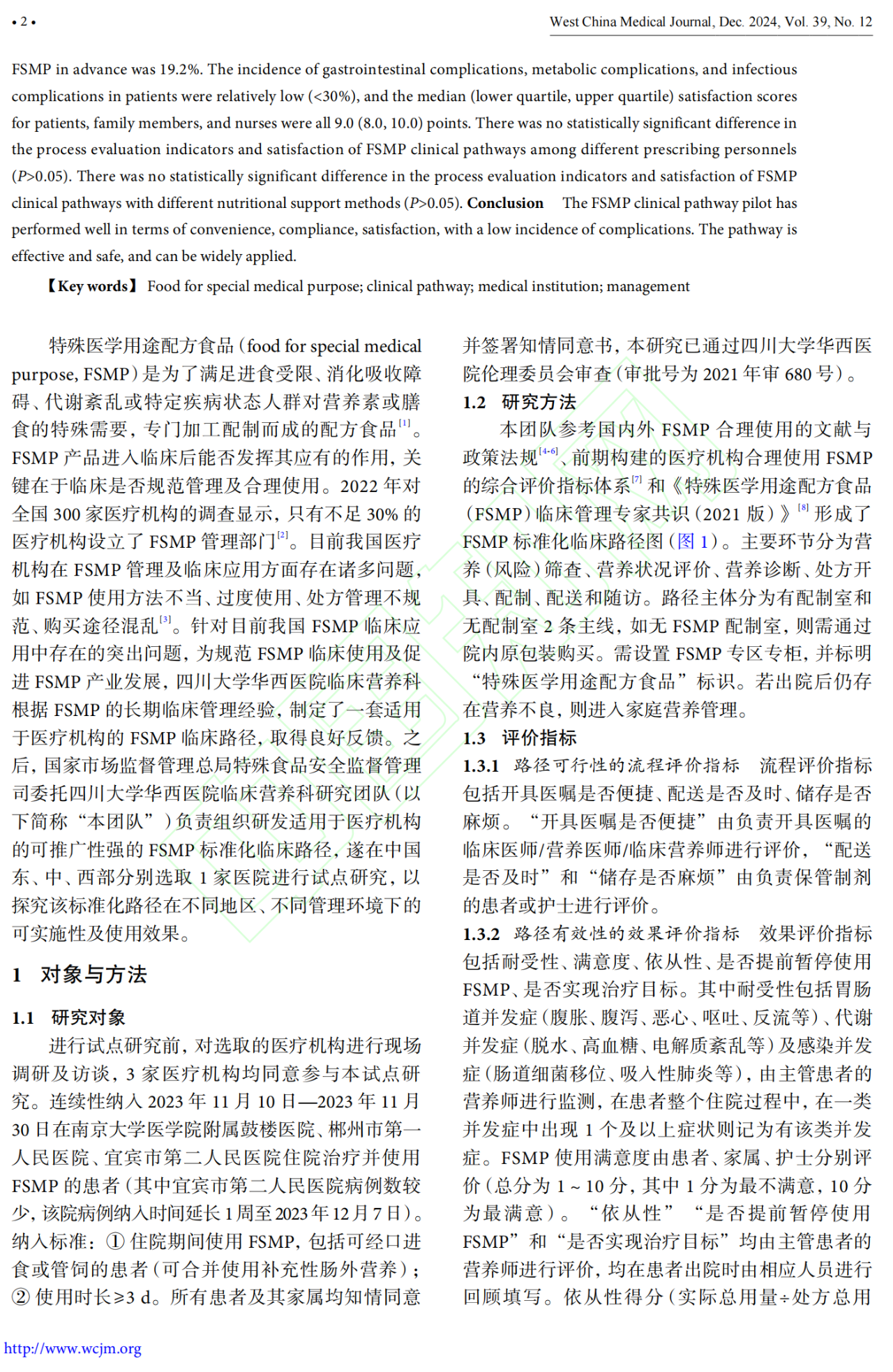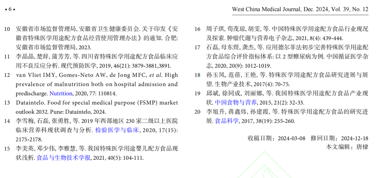特殊醫(yī)學(xué)用途配方食品(FSMP)是為了滿足特定疾病狀態(tài)下人群對營養(yǎng)素或膳食的特殊需要而專門加工配制的配方食品。隨著FSMP在臨床上的廣泛應(yīng)用,如何規(guī)范管理及合理使用成為關(guān)鍵問題。本研究旨在探討FSMP標(biāo)準(zhǔn)化臨床路徑的可推廣性及實(shí)施效果,以期提高醫(yī)療機(jī)構(gòu)對FSMP的管理水平和臨床應(yīng)用效果。