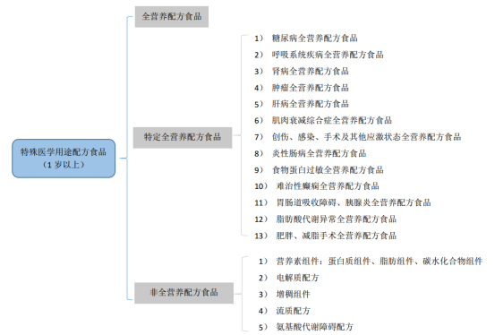 我國(guó)對(duì)特醫(yī)食品實(shí)行嚴(yán)格的注冊(cè)審批管理。根據(jù)《特殊醫(yī)學(xué)用途配方食品通則》(GB29922-2013),特殊醫(yī)學(xué)用途配方食品具體分類為