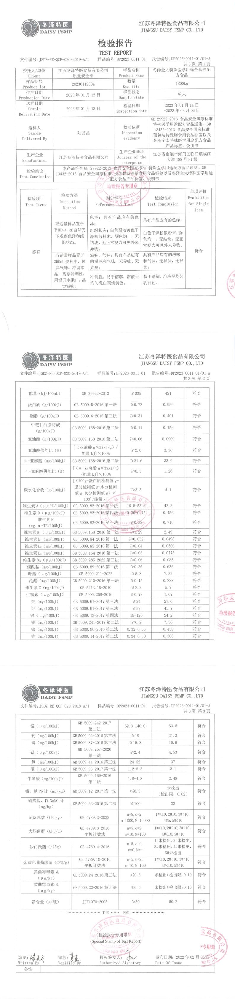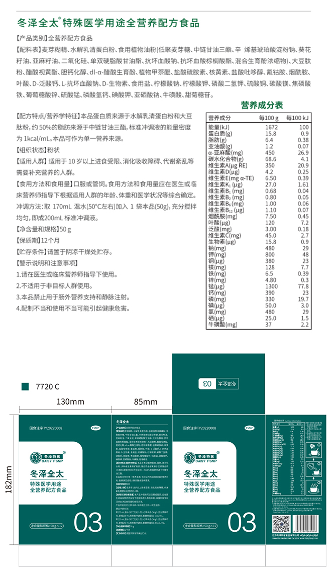 冬澤全太特殊醫(yī)學(xué)用途全營(yíng)養(yǎng)配方食品